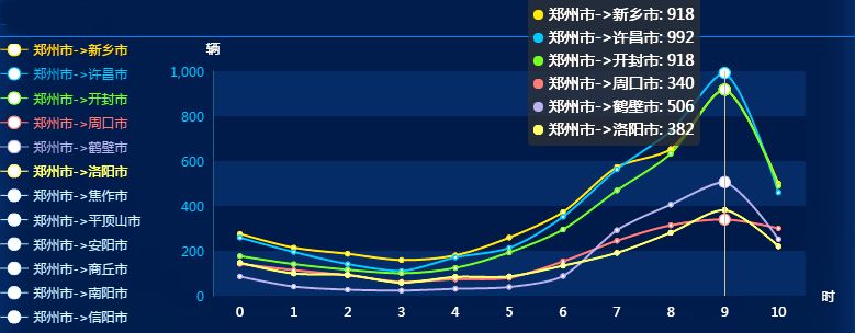 图2.省内高速车流迁徙(郑州为中心)示意图