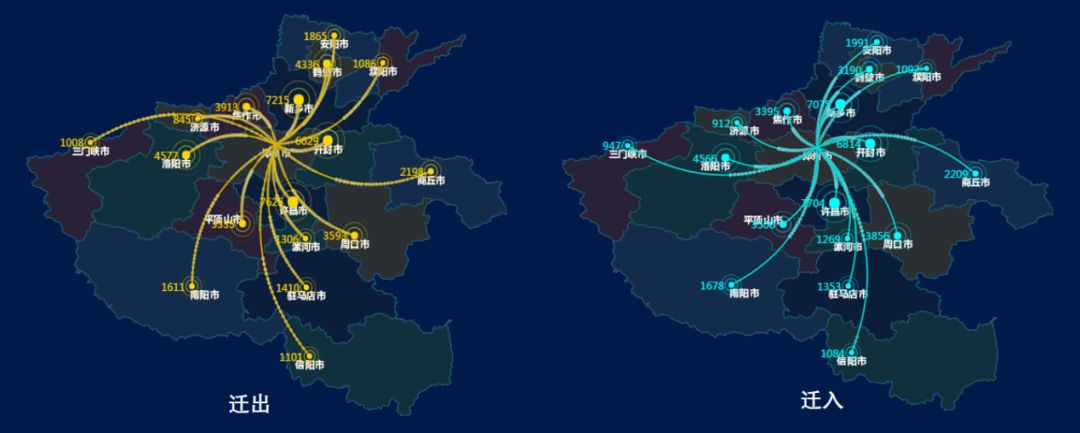 根据历年春运监测数据,以郑州为中心的车流迁徙(迁入、迁出)最为活跃。日常车流迁徙中,许昌市、新乡市和开封市为主的近距离迁徙量最大。“春运期间”,除郑州附近外,全省距离位置较远、人口较多地市(信阳市、南阳和三门峡市等)迁徙量将会大幅增长。