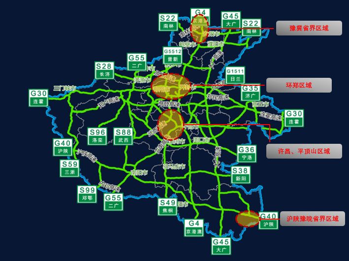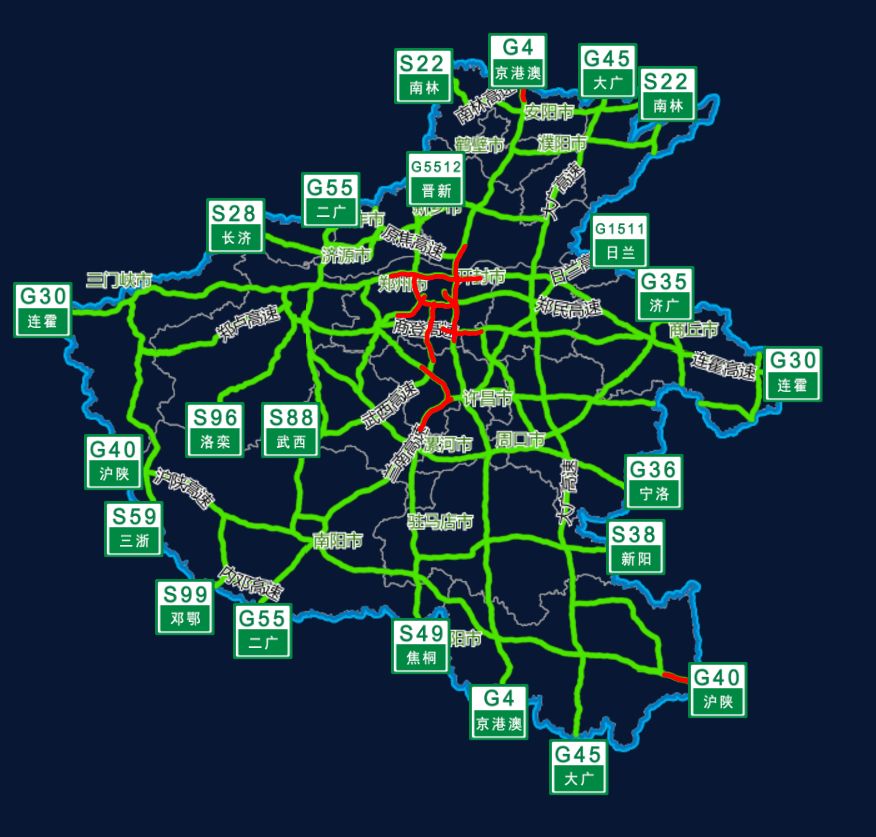 预计春运期间全省易拥堵路段分别是京港澳高速(新郑段、郑漯段、豫冀省界)、连霍高速(郑州段)、机场高速、郑西高速(始祖山段)、兰南高速(平顶山段)、郑卢高速(郑州段)、商登高速(航空港段)。
